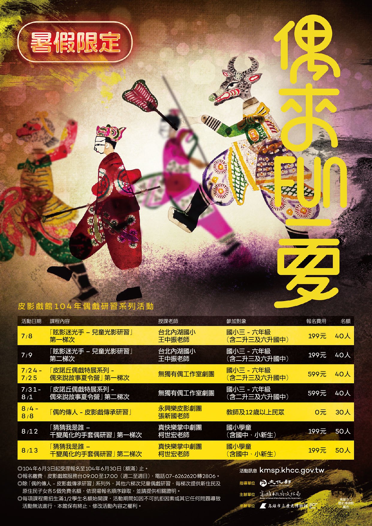 三、活動資訊請至高雄市皮影戲館(http://kmsp.khcc.gov.tw)網站下載,