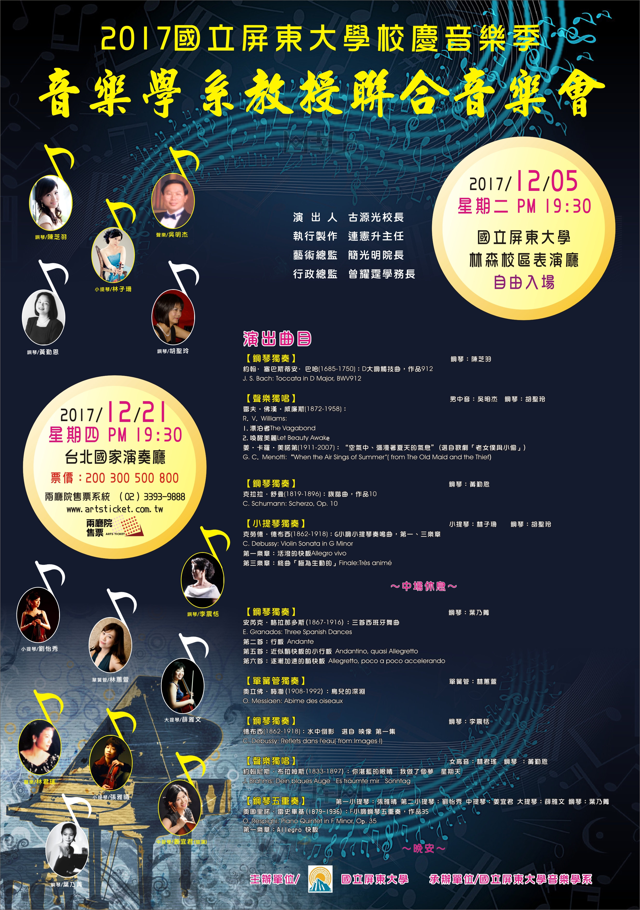 | 2017/11/08 轉知屏東大學辦理「2017校慶音樂季音樂學系教授聯合音樂會」文宣資料 |
