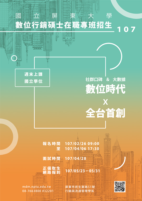 國立屏東大學行銷與流通管理學系107學年度數位行銷碩士在職專 班招生資訊