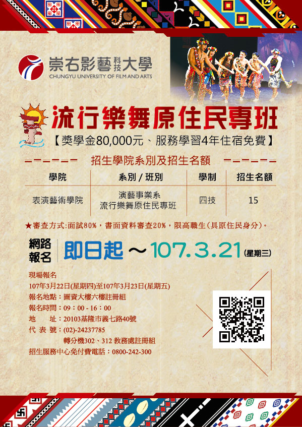 附加檔案:崇右影藝科技大學原住民專班招生海報.jpg (248.93 KB)