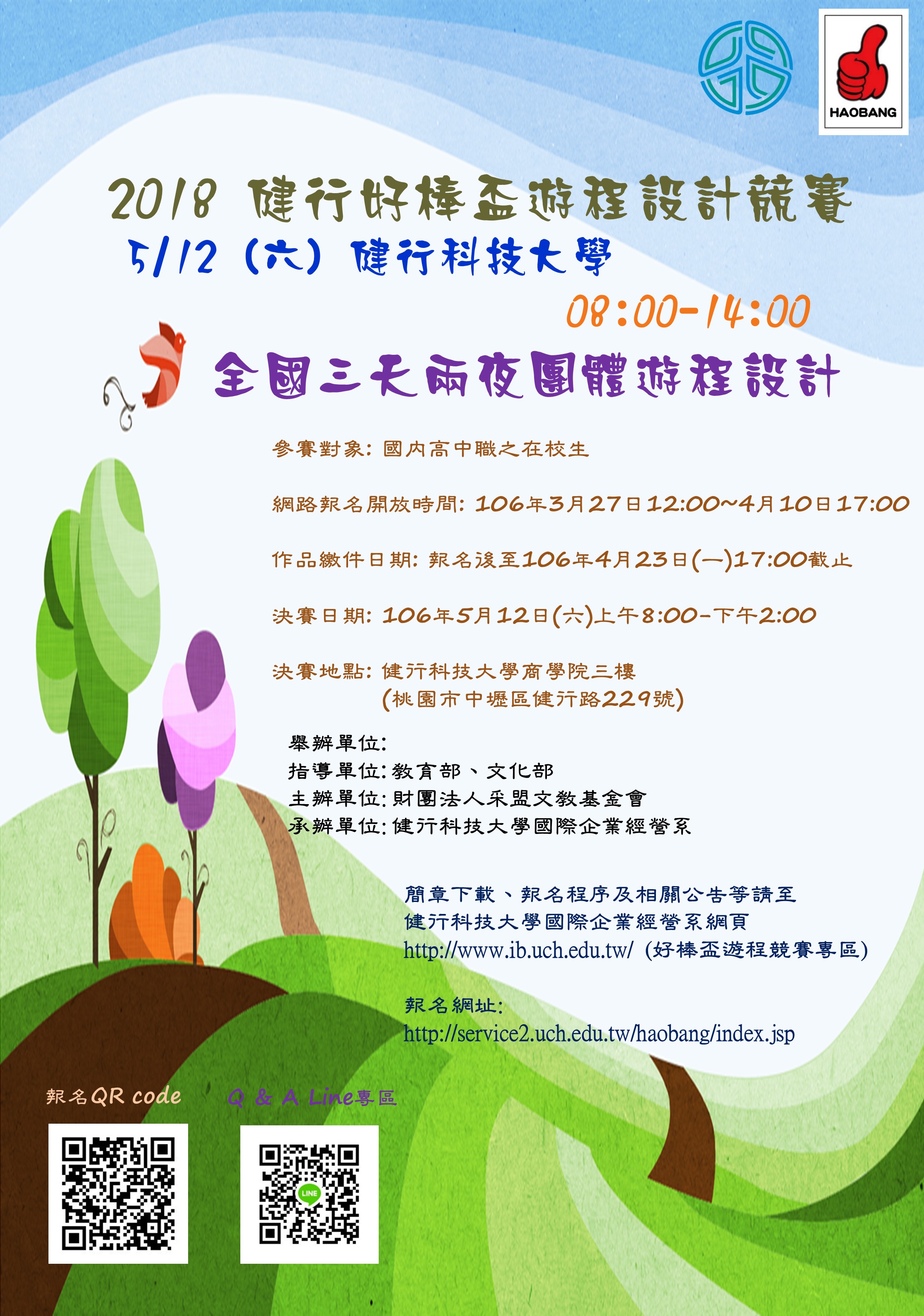 附加檔案:2018健行好棒盃遊程設計競賽1.pdf (473.75 KB)