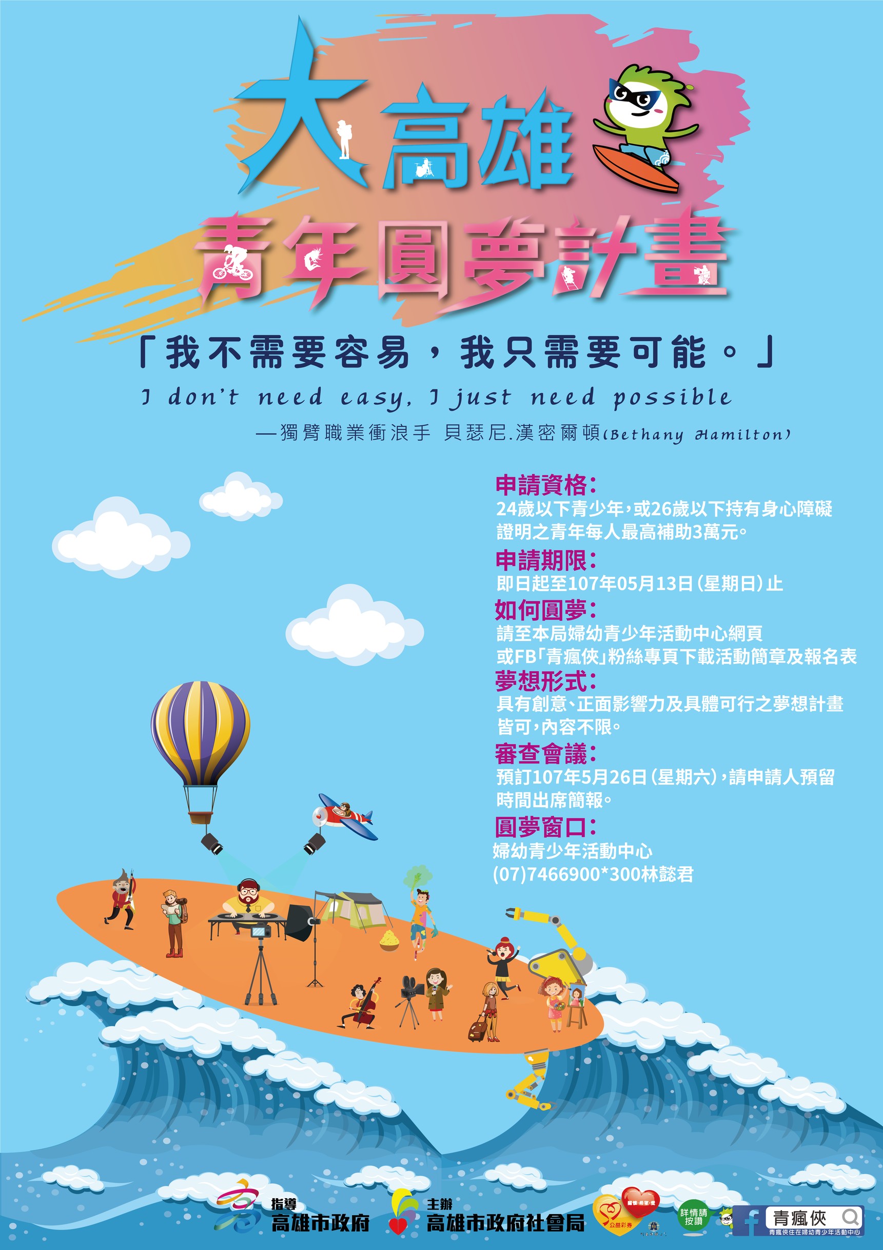 | 2018/04/30 2018第九屆「創意圓夢‧公益行動─大高雄青年圓夢計畫」 |