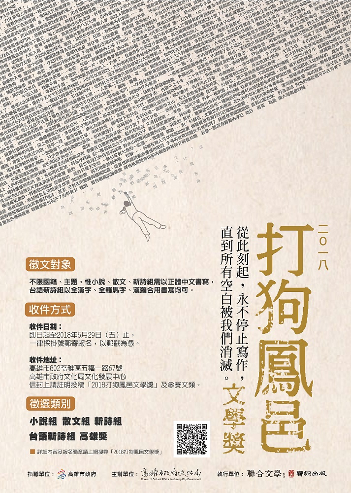 | 2018/05/07 轉知:「2018打狗鳳邑文學獎」徵文簡章暨報名表 |