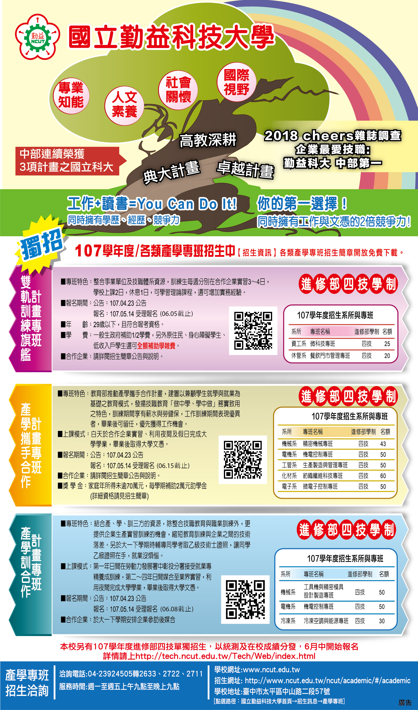 | 2018/05/11 勤益科技大學產學攜手合作計畫專班 |