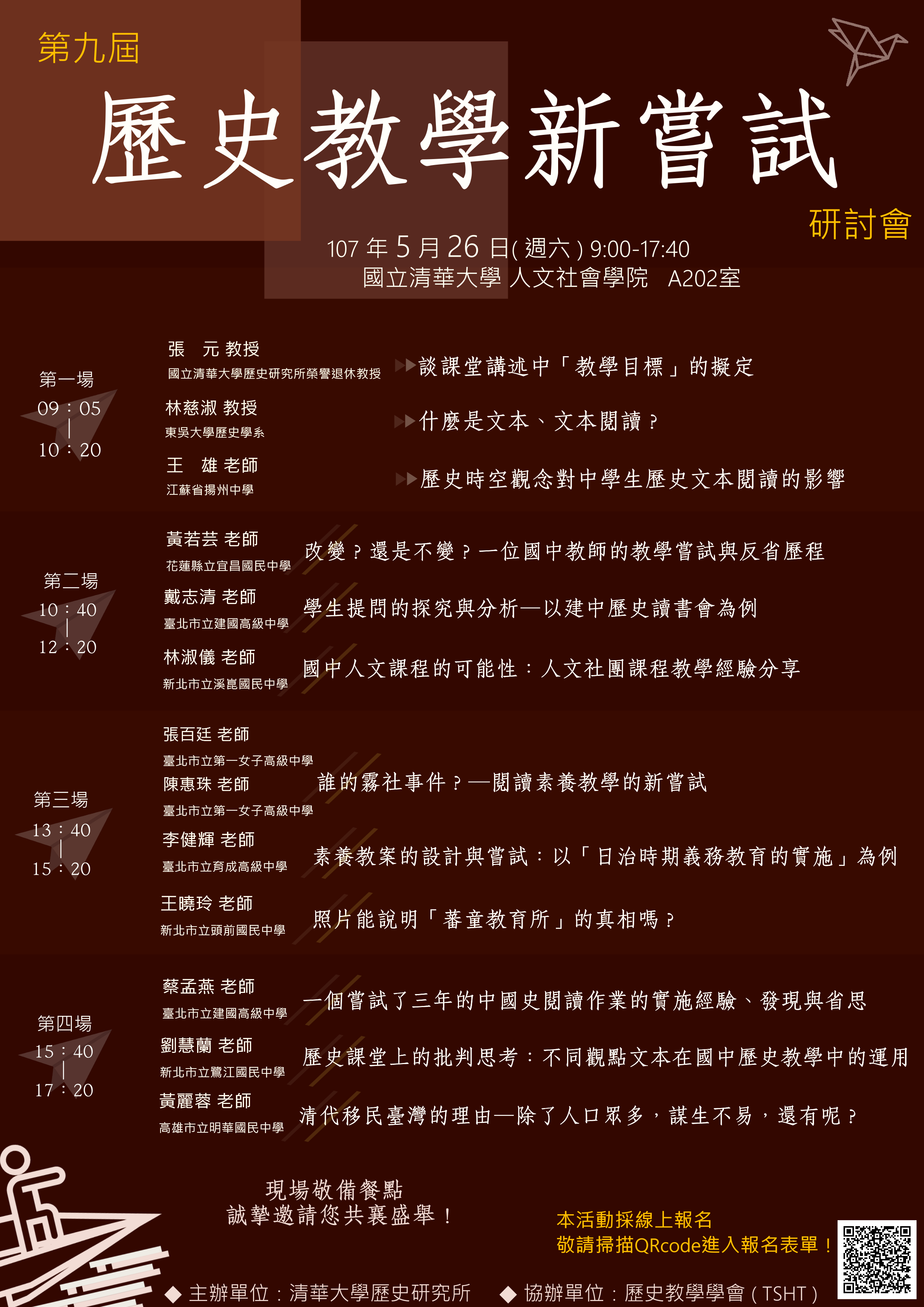 國立清華大學辦理「第九屆歷史教學新嘗試」研討會資訊,請查照。