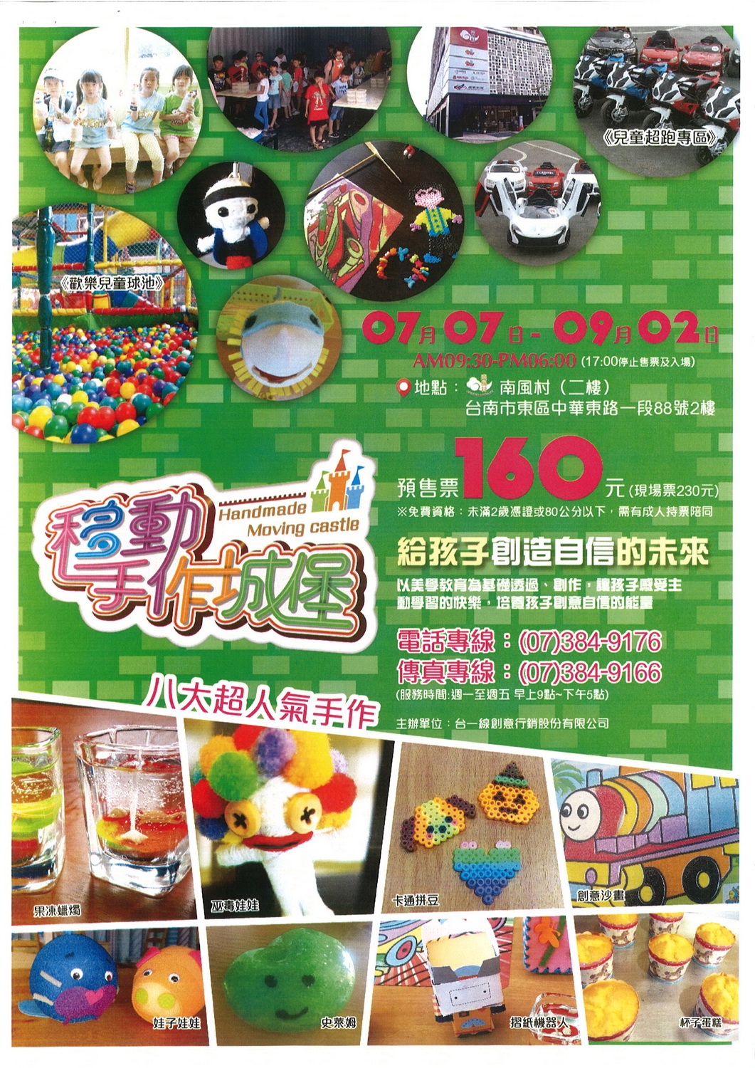 | 2018/05/23 台一線創意行銷股份有限公司將於本(107)年7月7日至9月2日假南風村2樓舉辦「移動手作城堡」 |