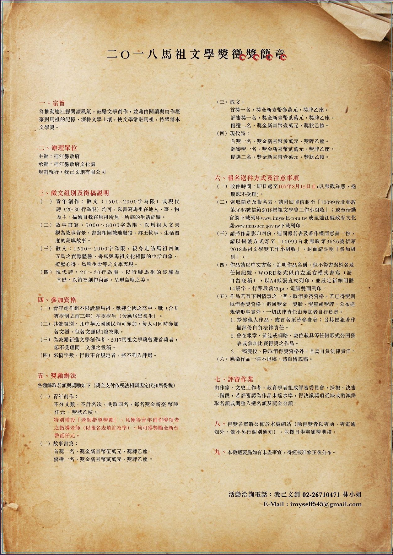 | 2018/05/31 轉知連江縣政府辦理「2018馬祖文學獎」徵選活動 |