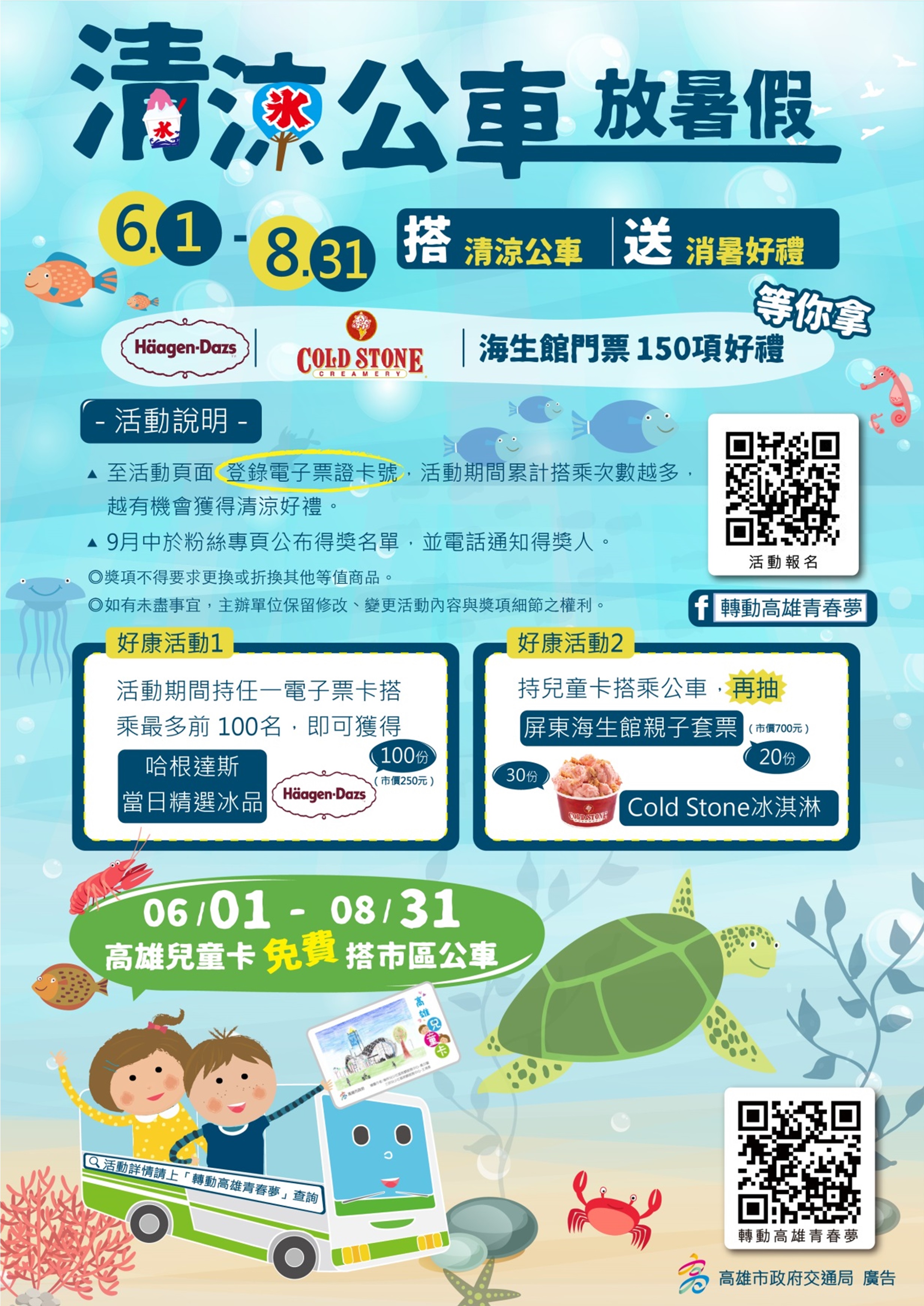 | 2018/06/04 清涼公車放暑假,高雄兒童卡免費刷,搭公車送你吃冰逛海生館 |