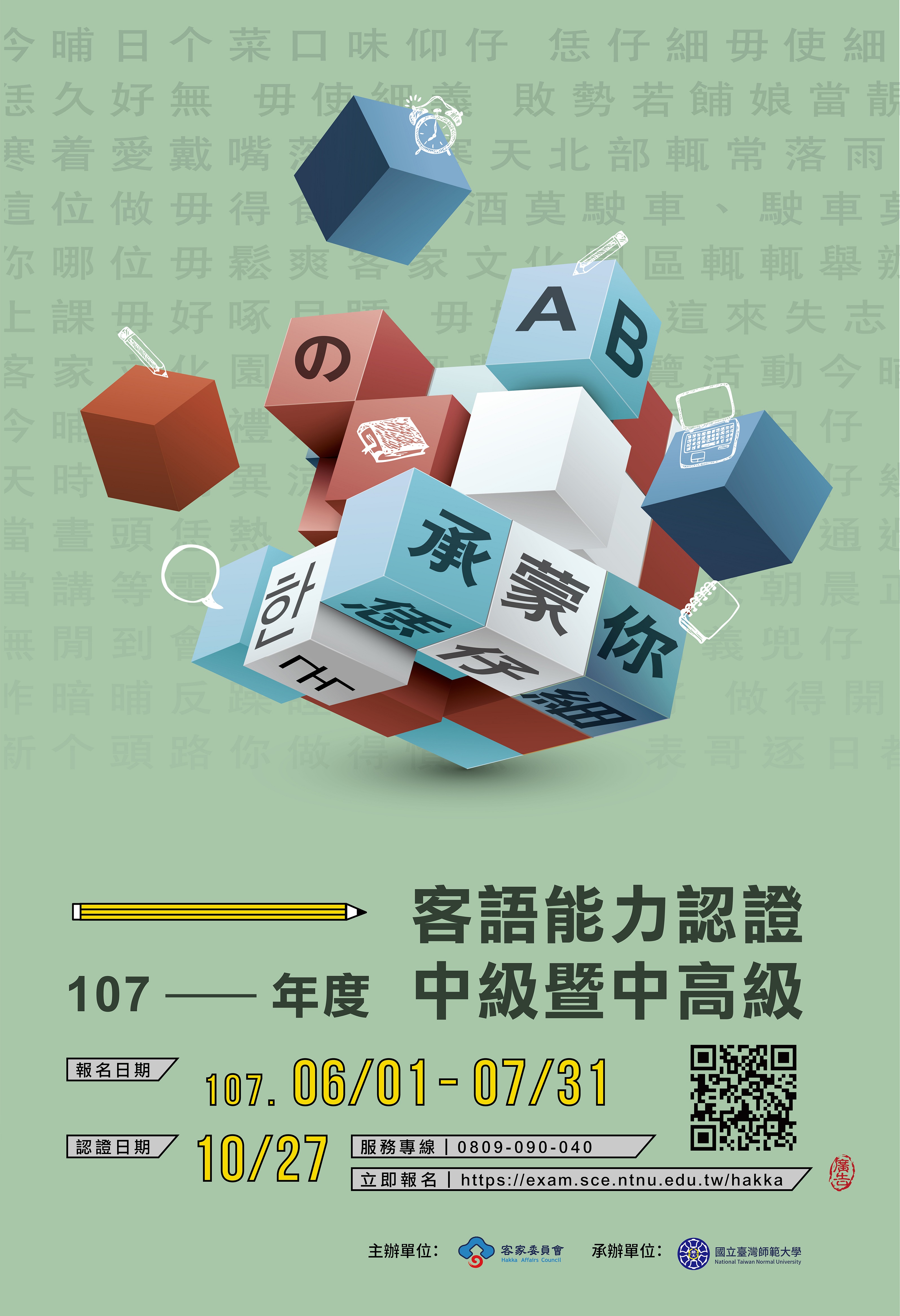 | 2018/06/06 「107年度客語能力中級暨中高級認證」報名 |