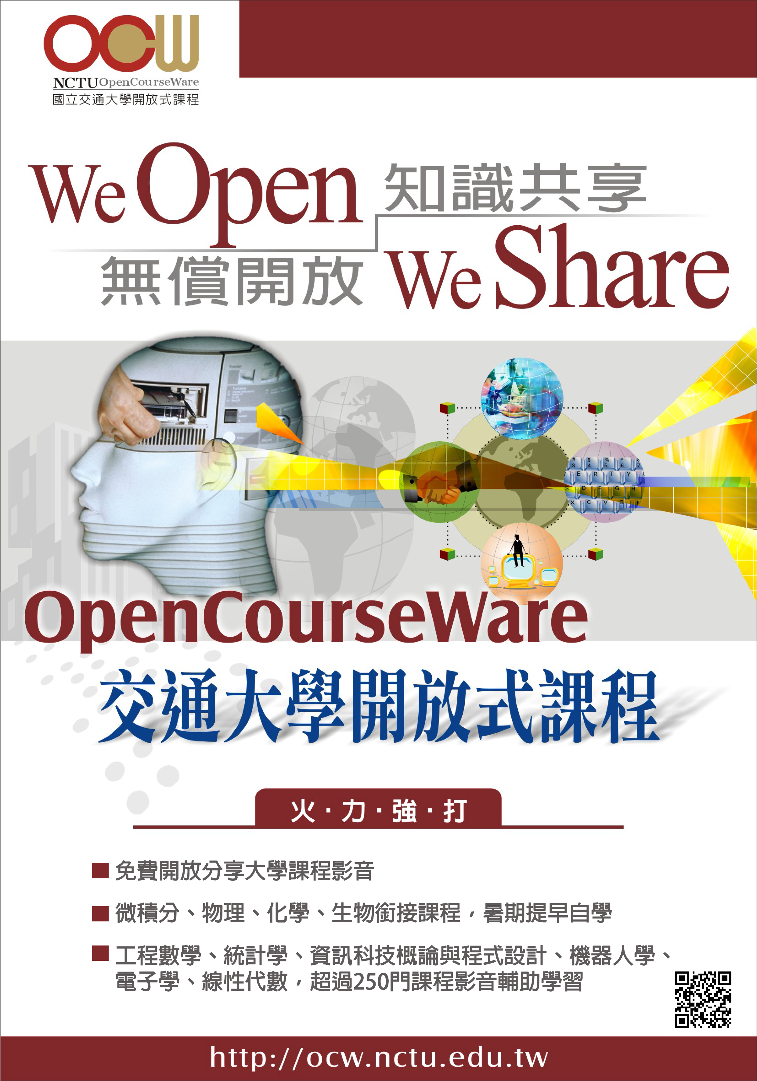 | 2018/06/06 交通大學開放式課程(OCW)無償提供79門高中銜接大學課程供自學 |