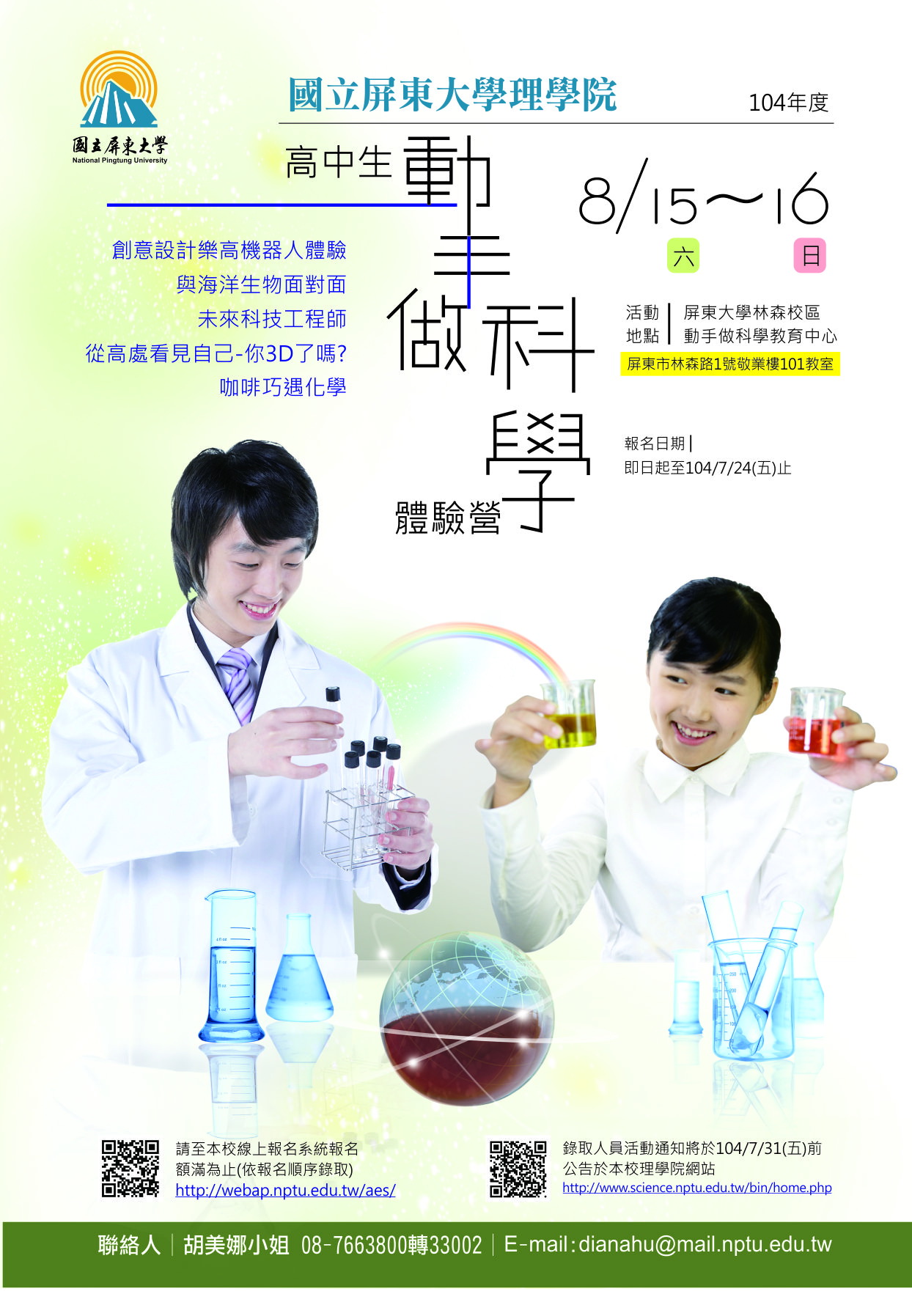 | 2015/06/08 國立屏東大學理院 10 4年度高中生 動手做 科學 體驗營 |