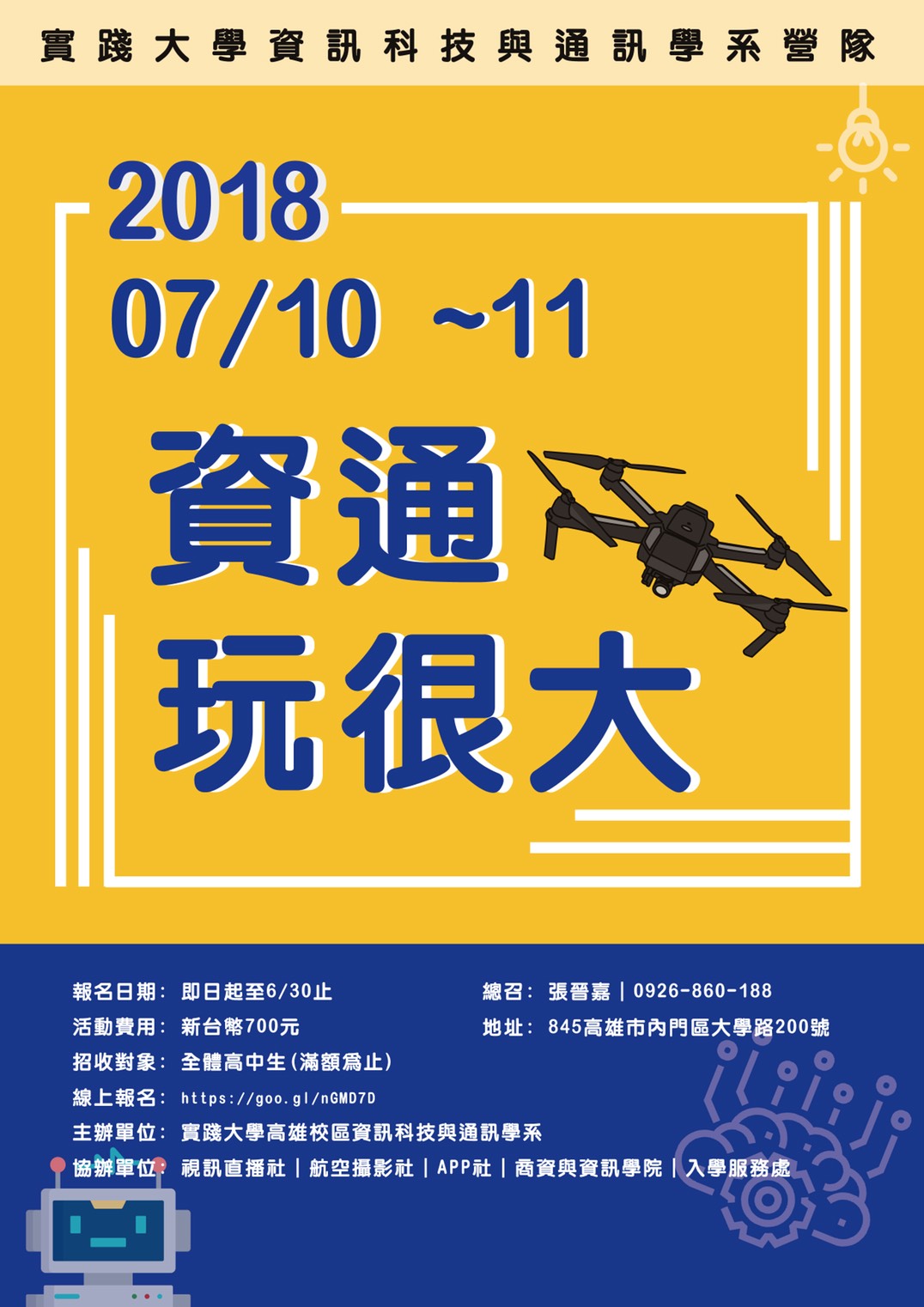 一、旨揭活動訂於107年7月10日至7月11日,假本校高雄校區舉行。