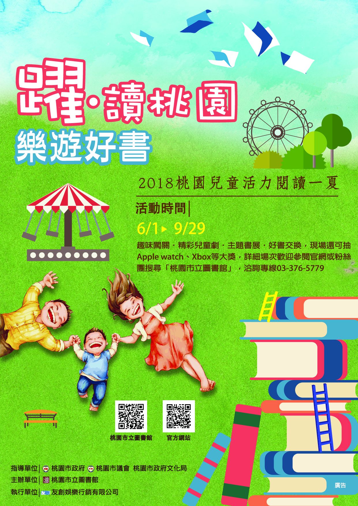 | 2018/06/22 轉知桃園市立圖書館「2018桃園兒童活力閱讀一夏」暑期閱讀系列推廣活動 |