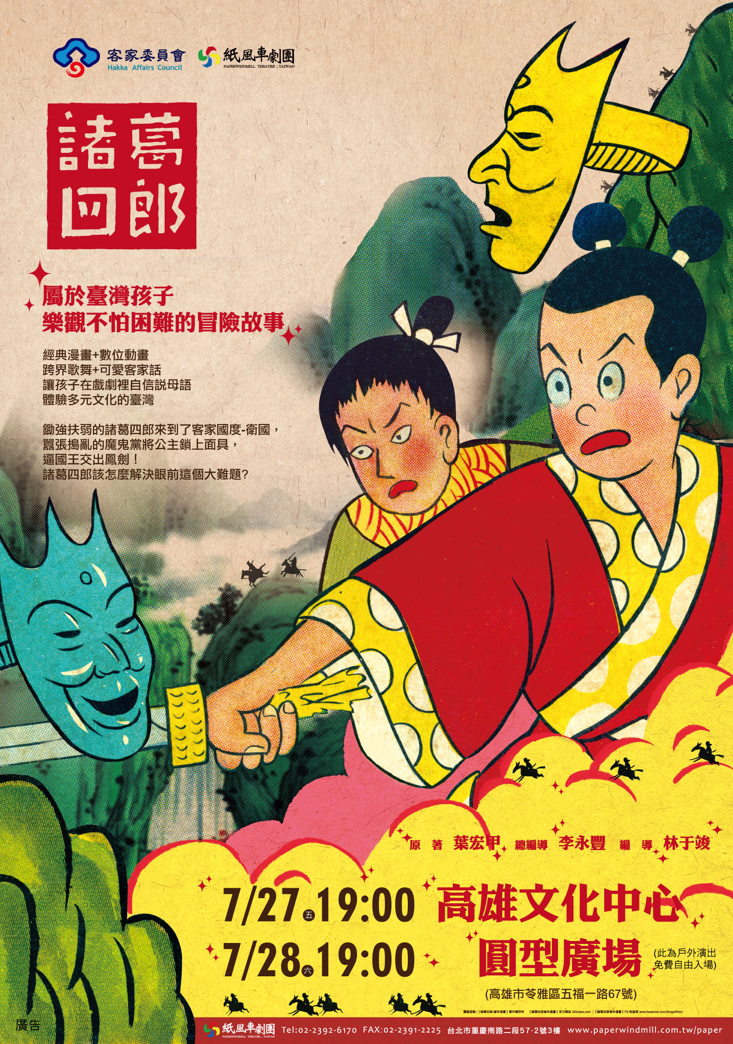 二、客家委員會為推動客語生活化,結合紙風車劇團於107年5月推出「2018客語版『諸葛四郎』舞臺劇」,吸引不同族群親近客家,並獲得各界熱烈迴響。