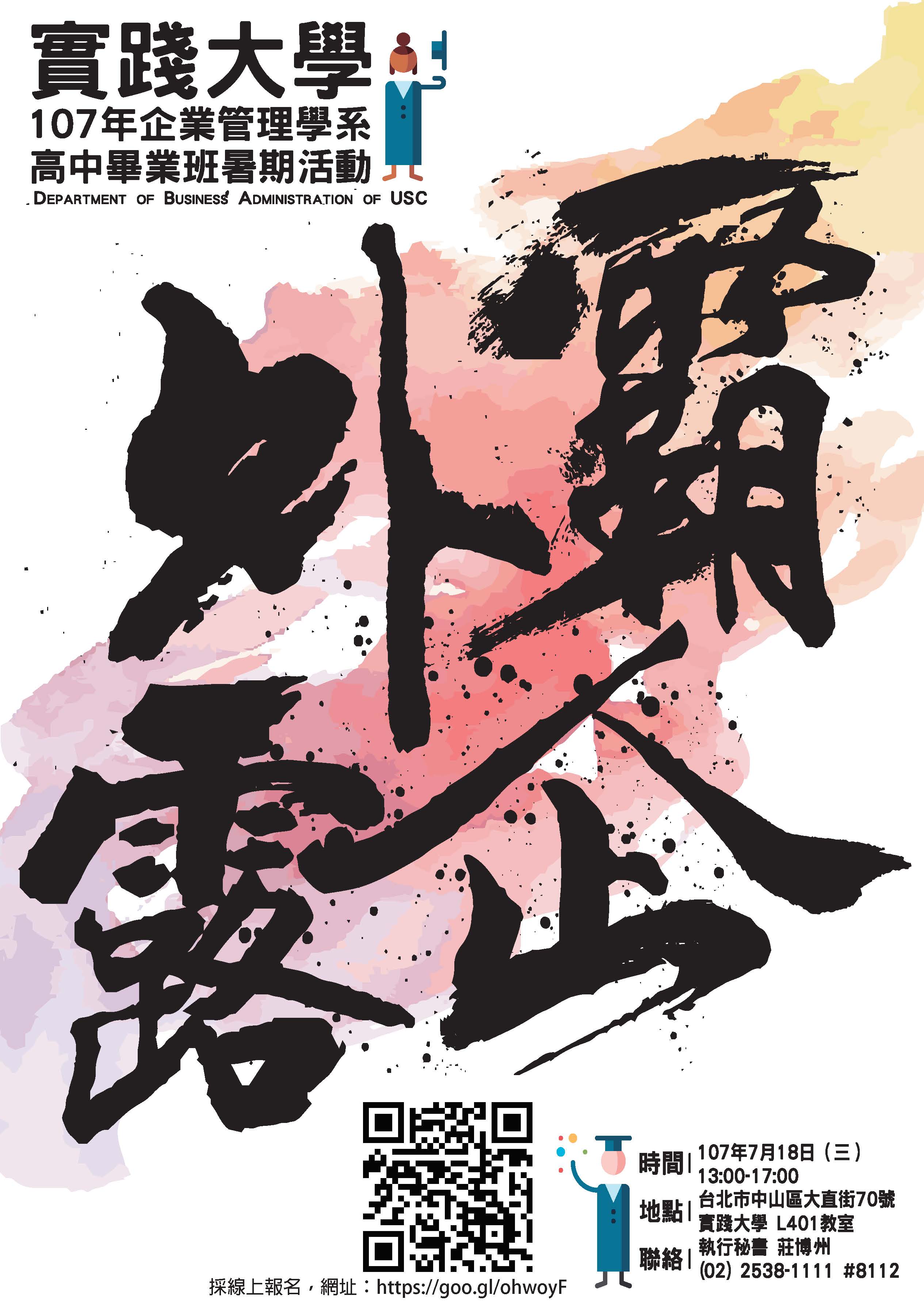 一、為協助高中學生認識本校企業管理學系學習內涵與未來就業方向,特辦理旨揭活動。