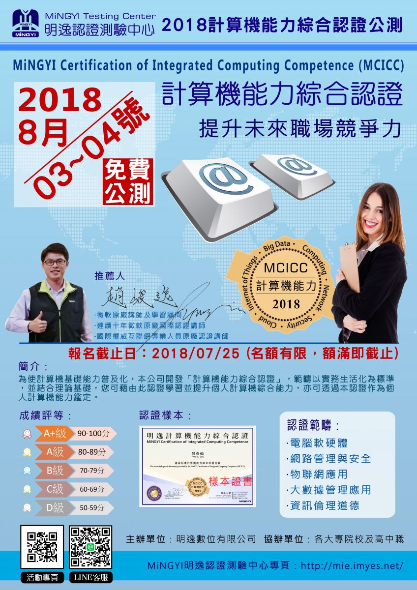 | 2018/07/09 「計算機能力綜合認證」公測活動 |