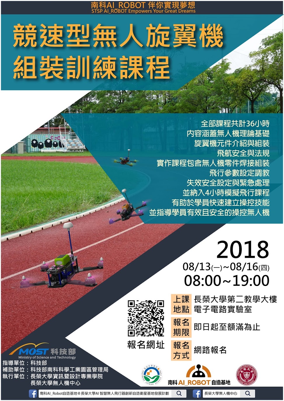 | 2018/07/24 長榮大學辦理「競速型無人旋翼機組裝課程」 |