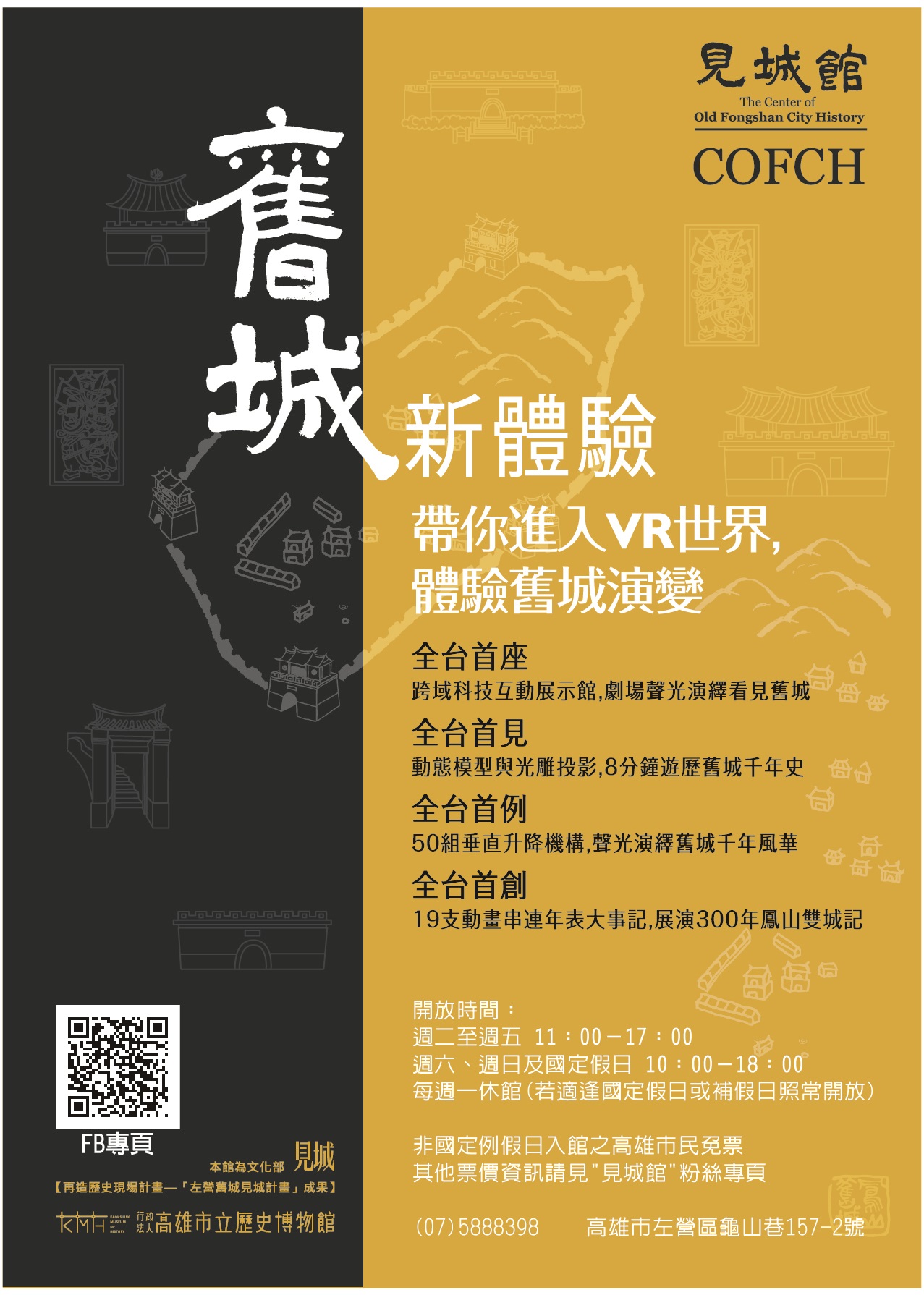 一、旨揭館舍於107年3月於高雄左營舊城開幕啟用,為全臺第一座以升降模型、光雕展演舊城歷史之文史展示館,並運用AR、VR科技互動技術,期能提供民眾超越時空的舊城體驗,再建舊城紋理與記憶。