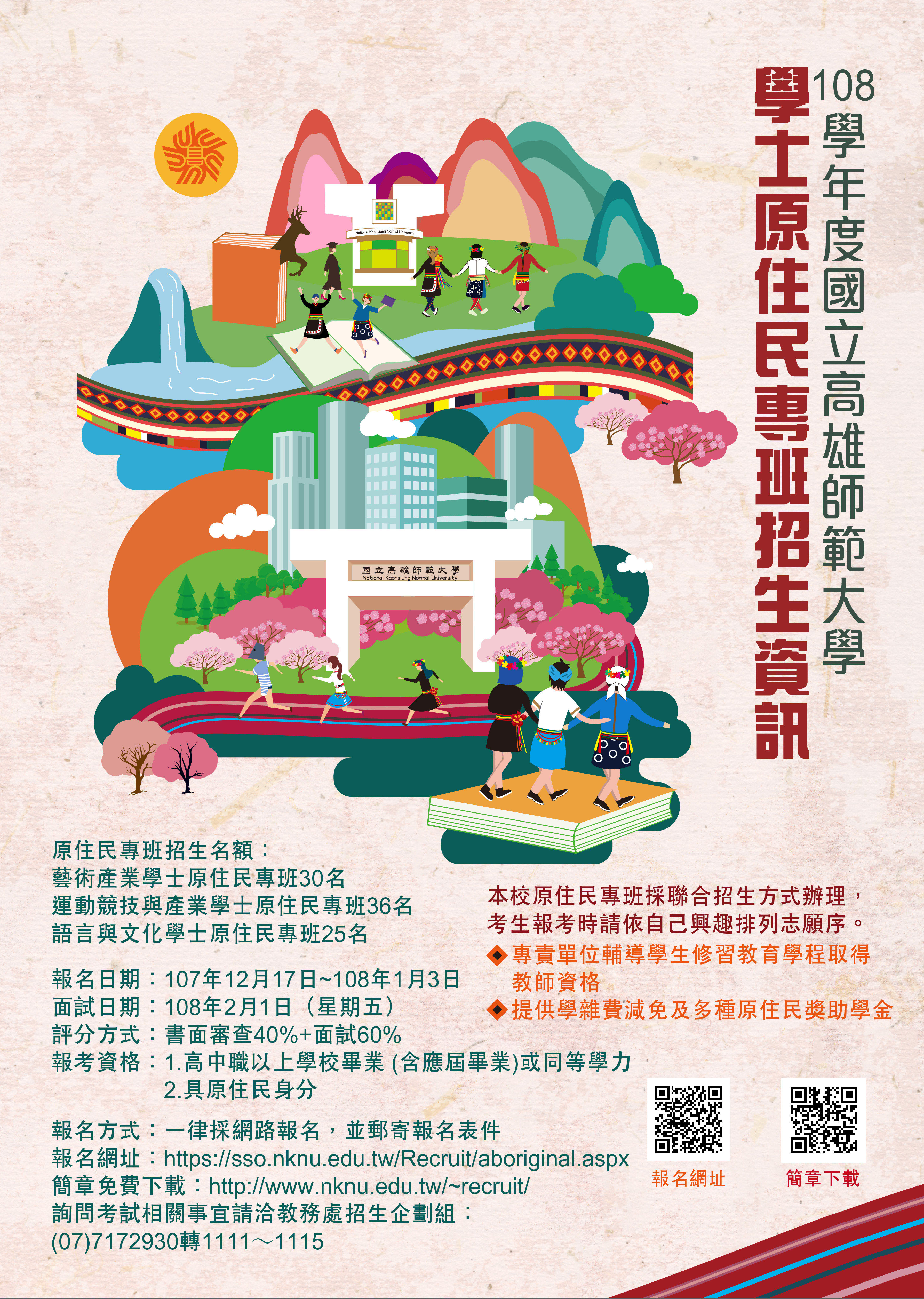 國立高雄師範大學108學年度學士原住民專班招生資訊