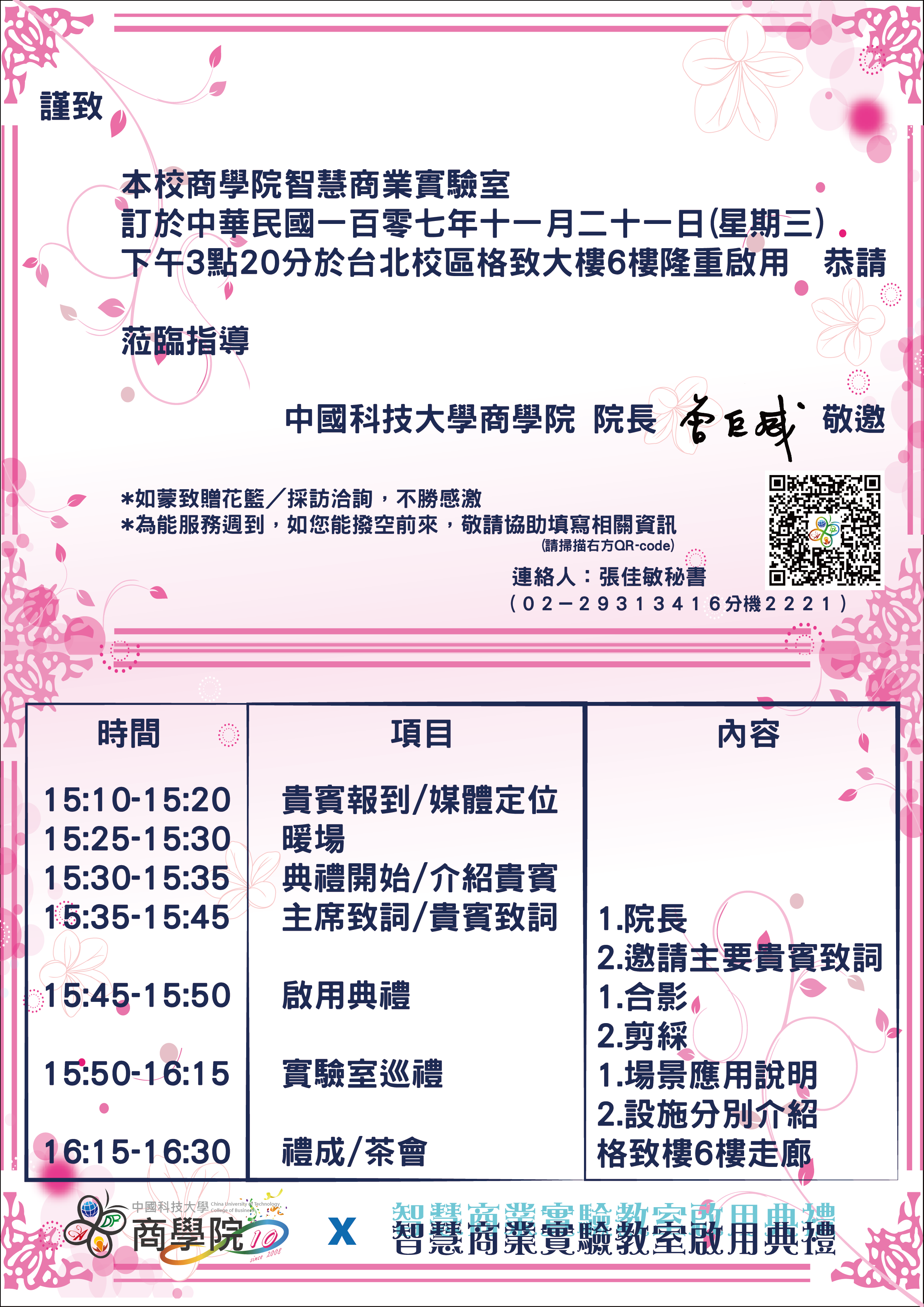 (一)智慧商業實驗室啟用典禮,107/11/21下午15:10,實驗室相關影音介紹如右示:https://youtu.be/tbxDbBa6kWA