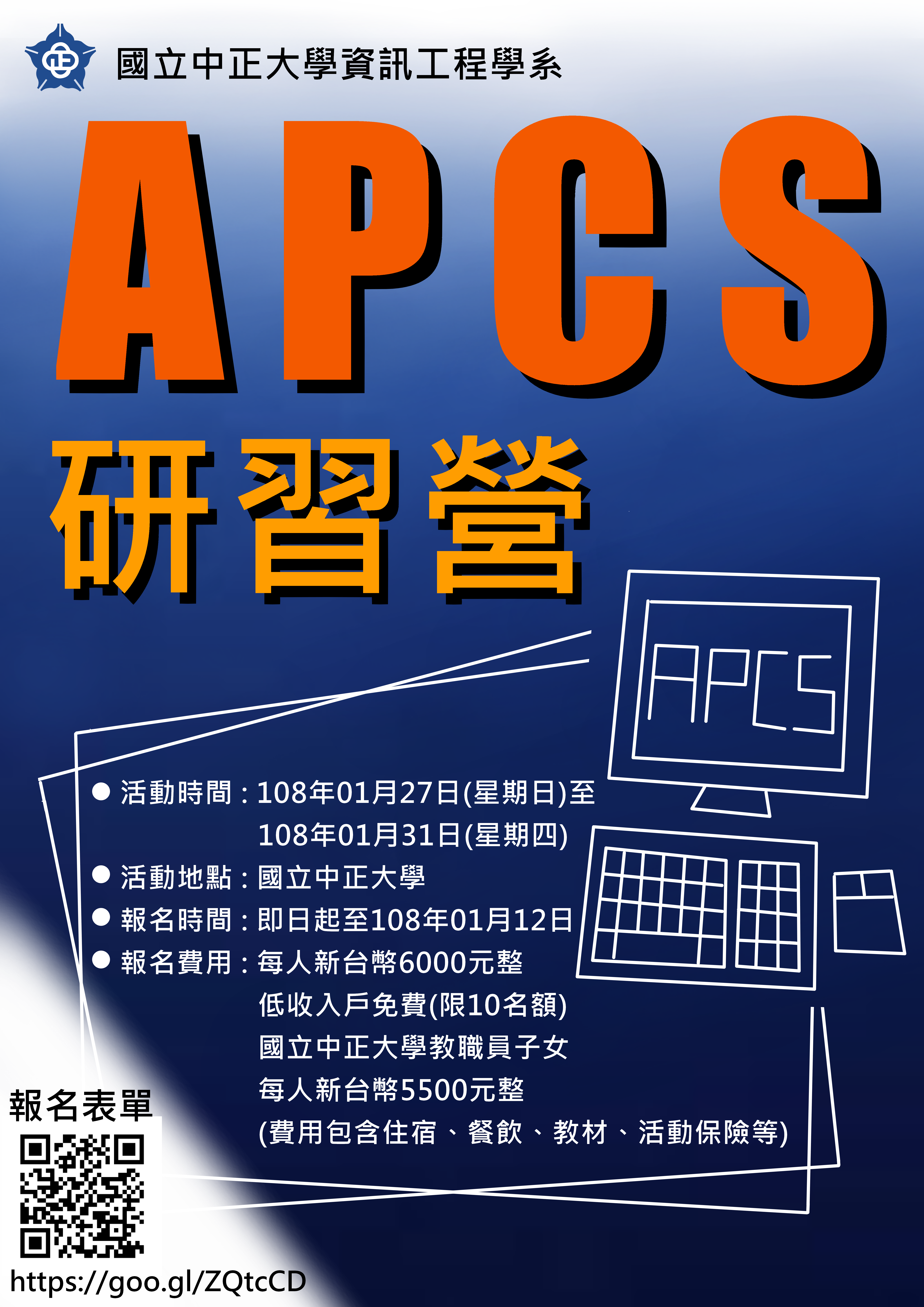 相關資訊:https://www.facebook.com/中正大學資工系-APCS-研習營-122745475345883