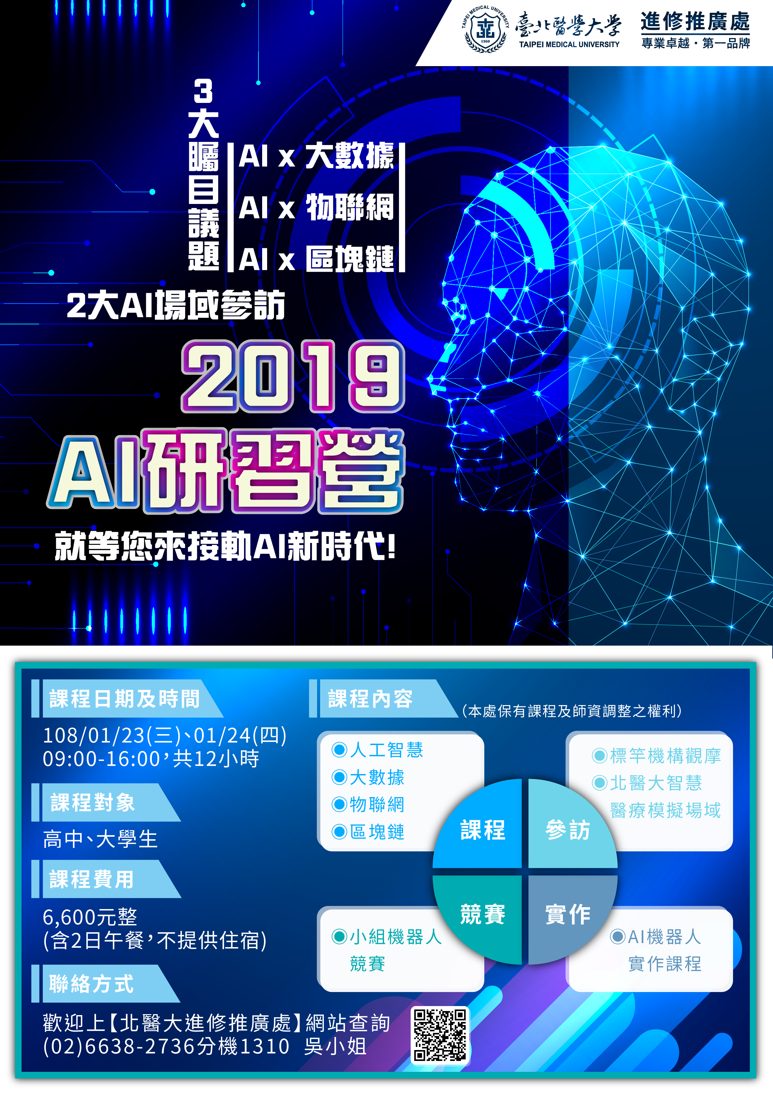 AI研習營線上相關資訊暨報名網址:https://ocee.tmu.edu.tw/courses_registration/class_103283/。