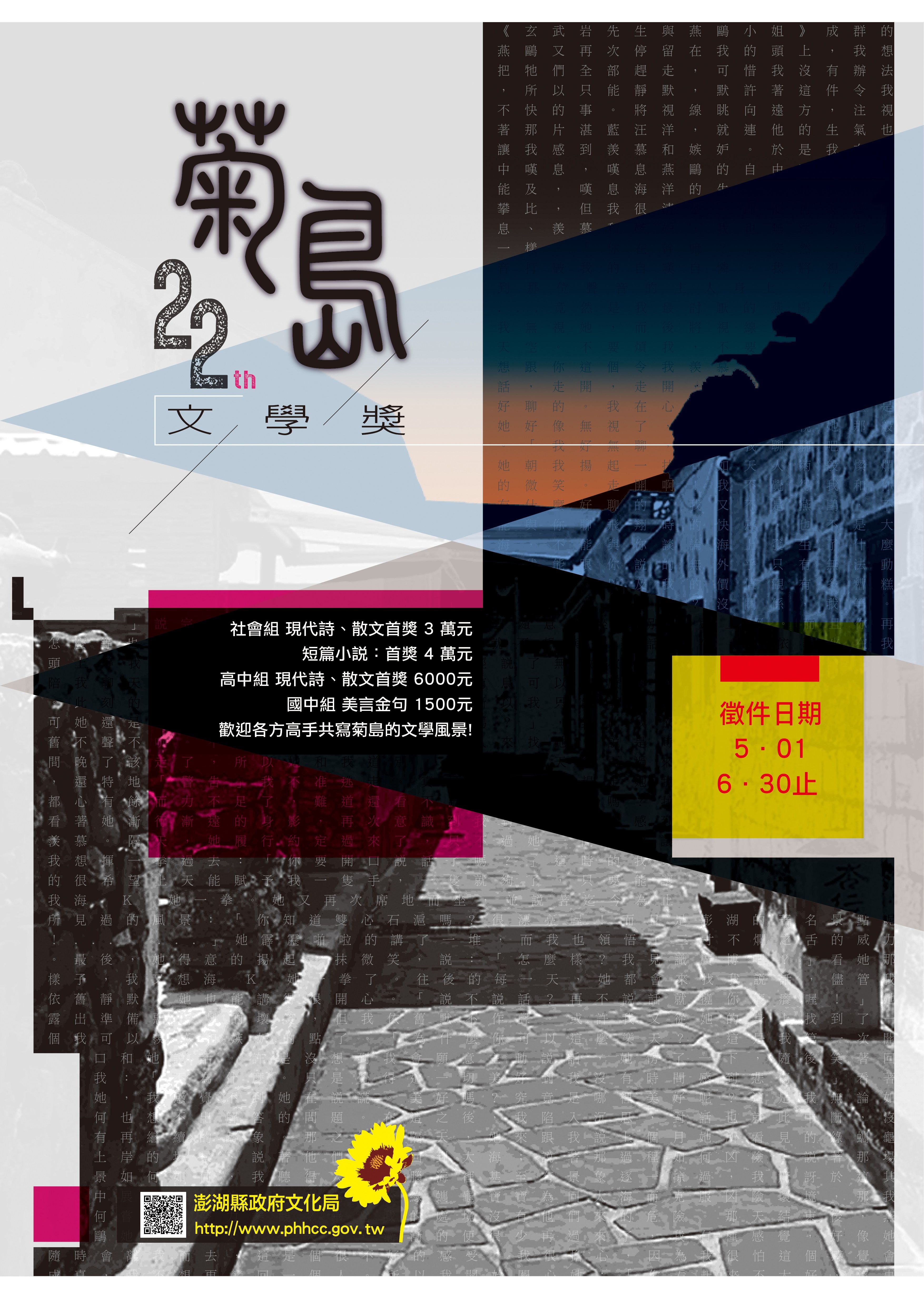 | 2019/04/10 轉知澎湖縣政府文化局辦理「第二十二屆菊島文學獎徵文活動」 |