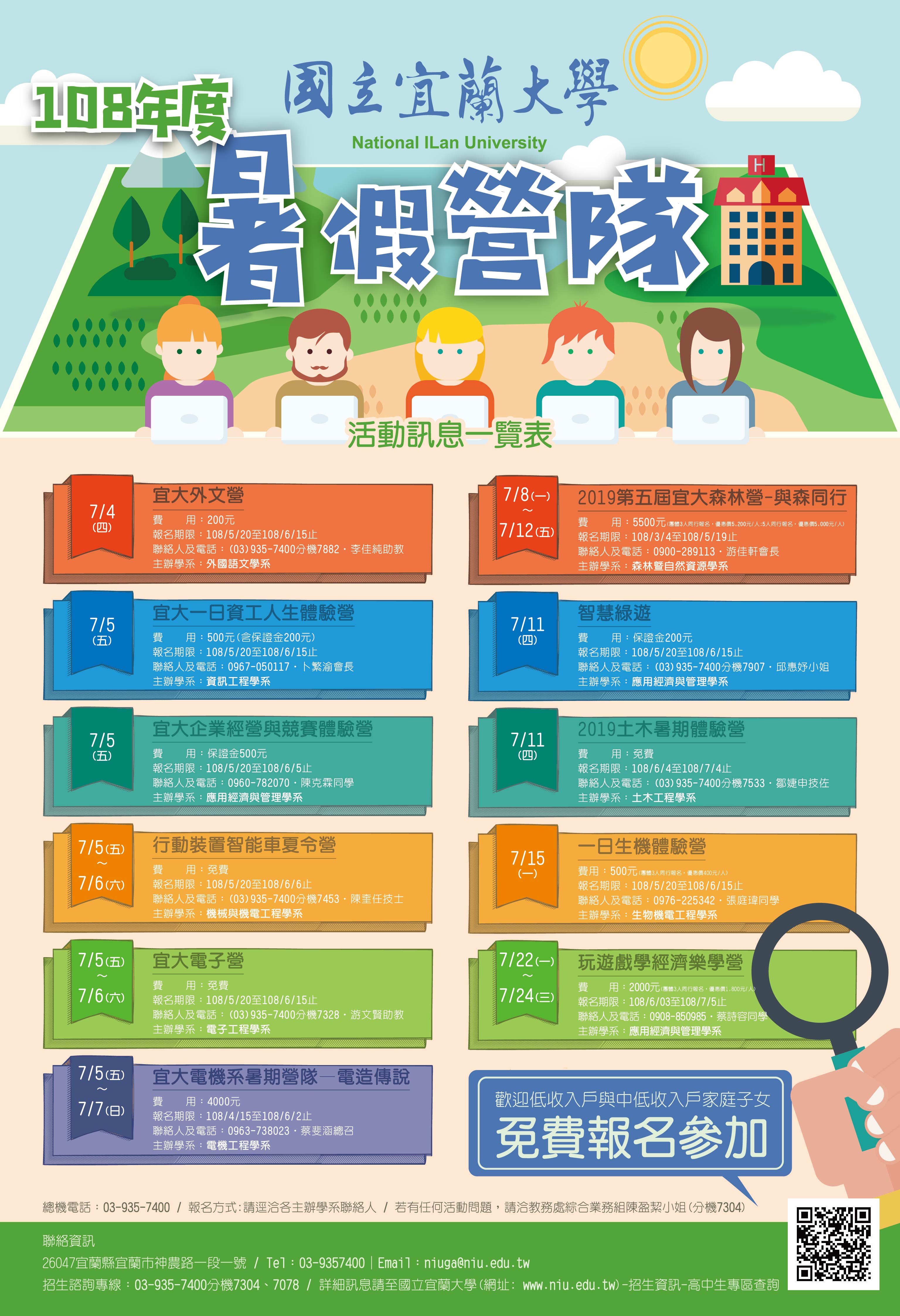 或由國立宜蘭大學首頁(網址:www.niu.edu.tw)/招生資訊/高中生專區/高中營隊查詢。