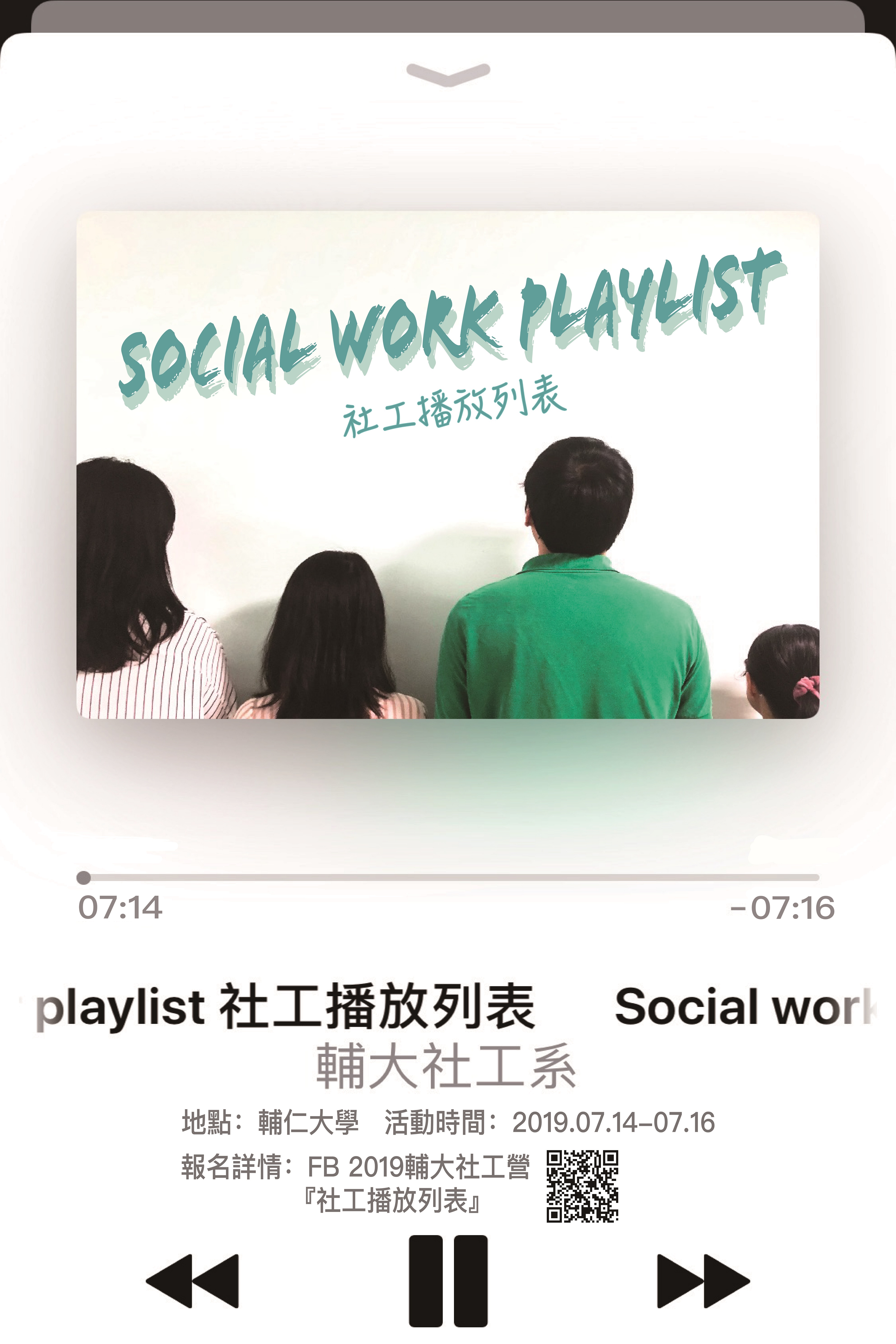 輔仁大學社會工作學系辦理2019年社工營「社工播放列 表」活動