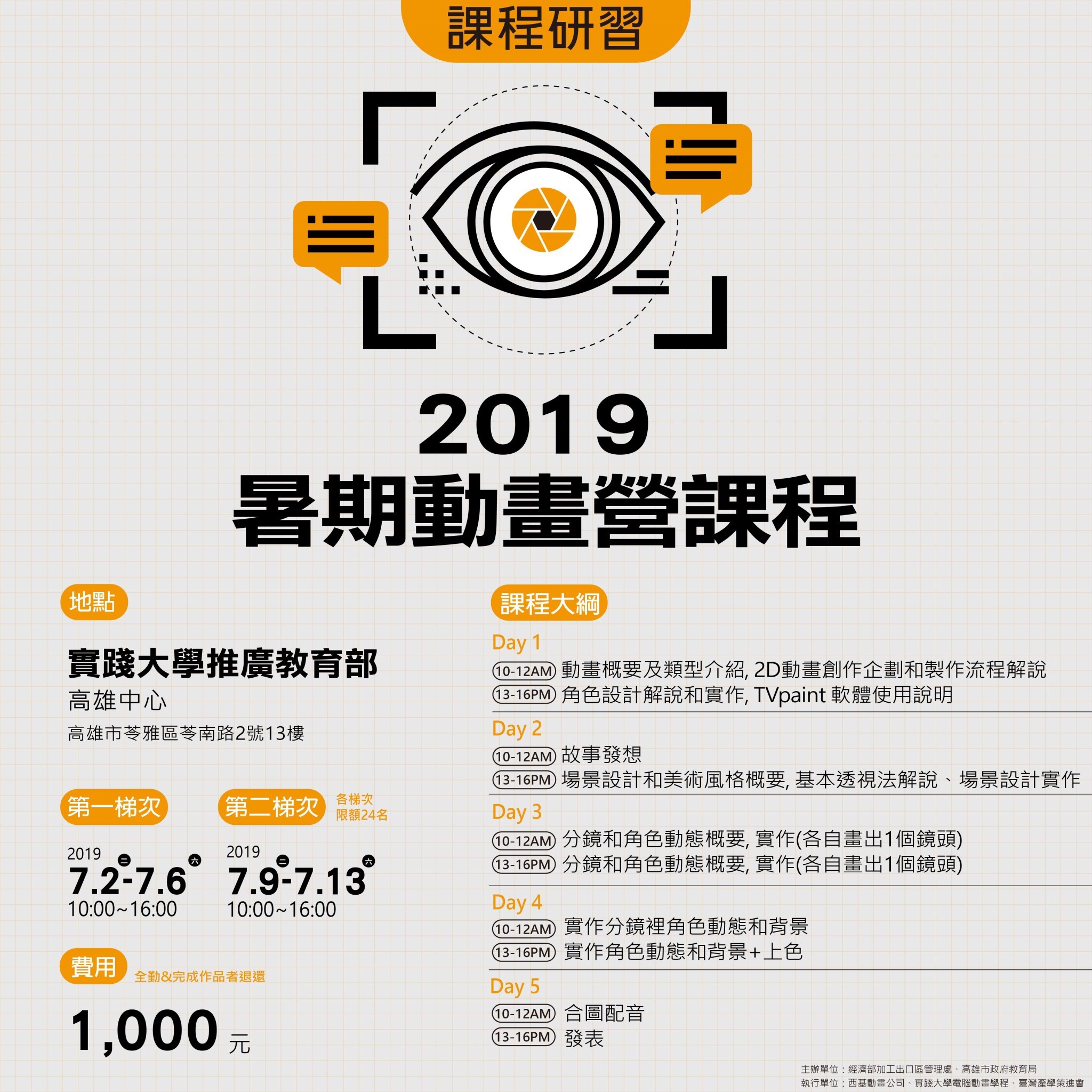 | 2019/04/29 本府教育局與經濟部加工出口區管理處辦理「2019年暑期動畫營課程」 |