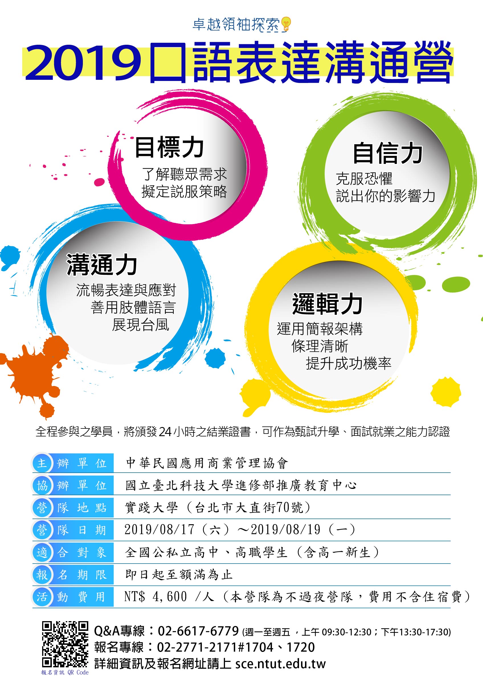 (二)口語表達溝通營:2019年8月17日-8月19日。