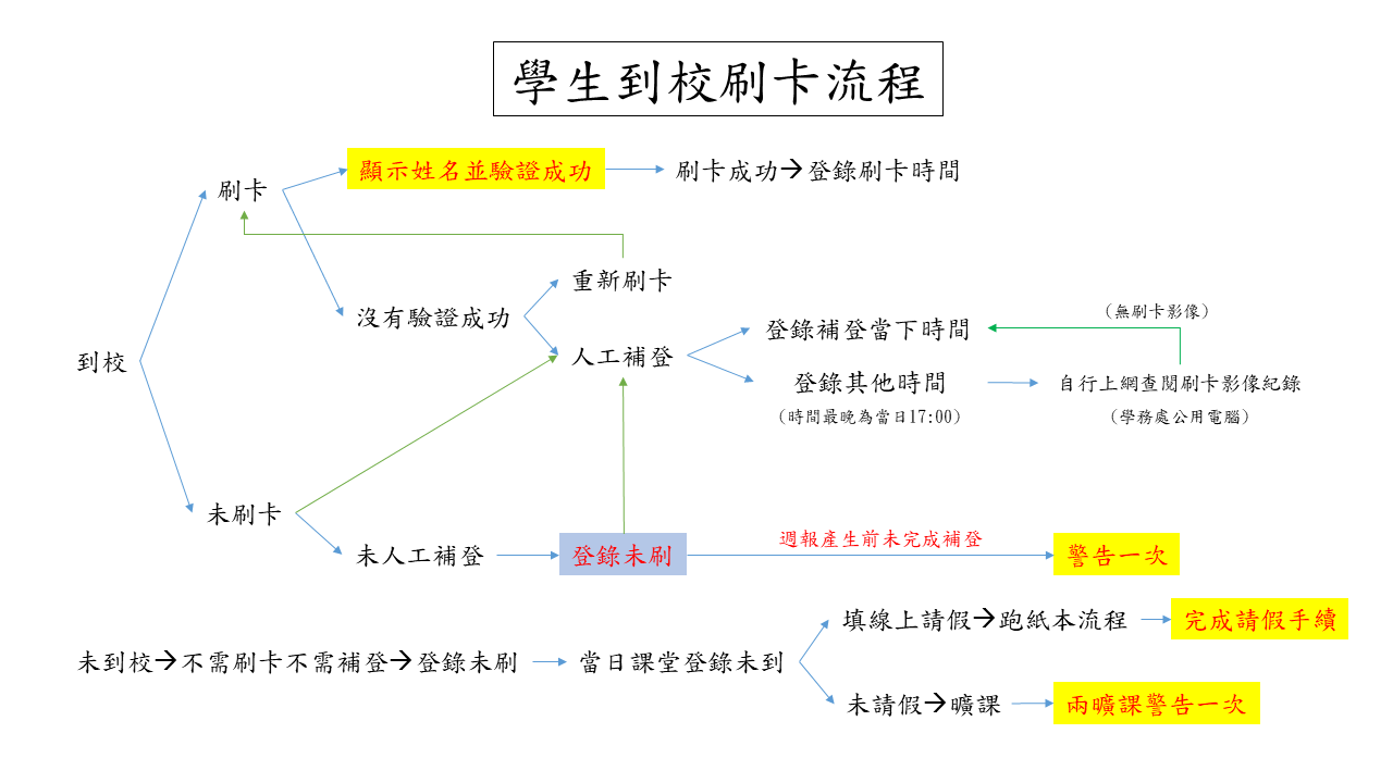 學生到校出勤刷卡相關規定