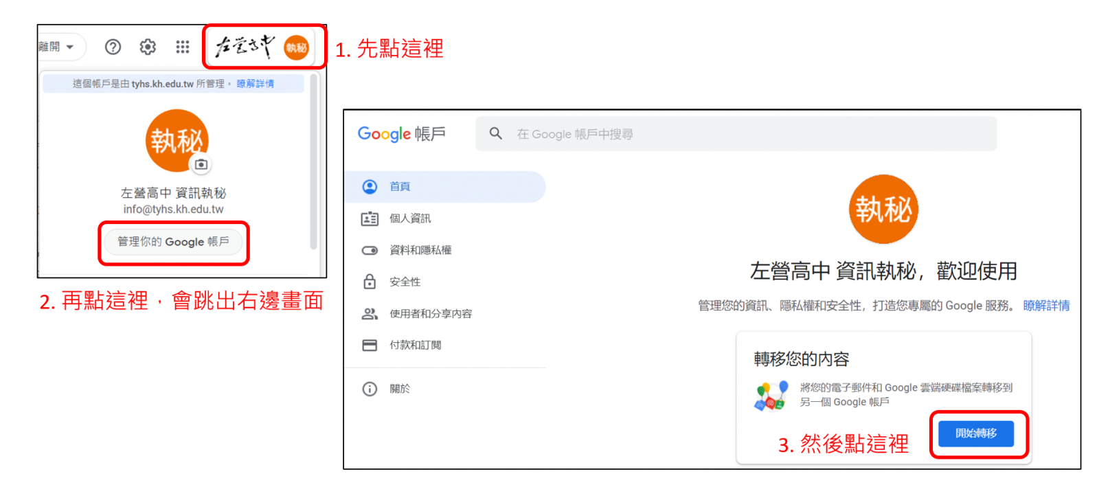 | 步驟三 -- 使用左中教育版Google服務 (連結) |